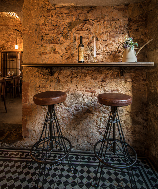 A decoração quente resultante das paredes e pilares de tijolo, num espaço onde a Carne Alentejana reina.